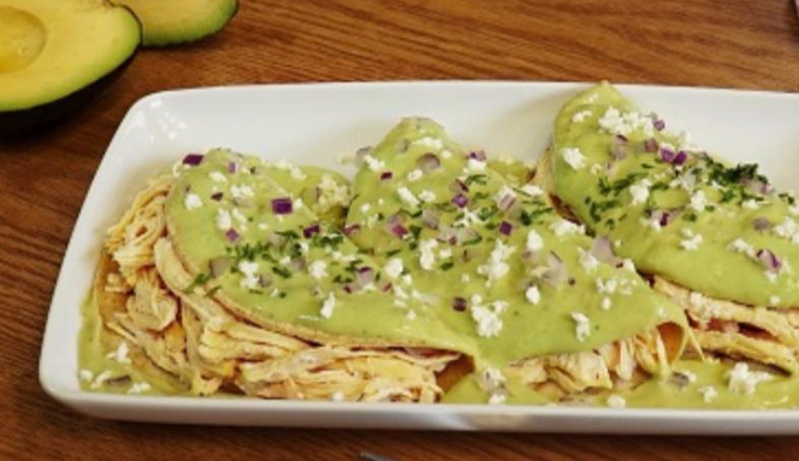 Prepara unas deliciosas enchiladas de pollo con salsa de aguacate